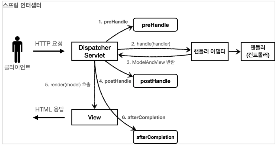 필터의 경우 단순하게 doFilter 메서드에서 chain.doFilter를 기준으로 호출 전과 호출 후의 과정을 분리해서 사용해야 했습니다. 하지만 인터셉터의 경우 호출 전(preHandle), 호출 후(postHandle), 요청 완료 이후(afterCompletion)로 세분화되어 있습니다. 또한, 어떤 컨트롤러(handler)가 호출되는지, 어떤 modelAndView가 반환되는지 응답 정보도 받을 수 있습니다.