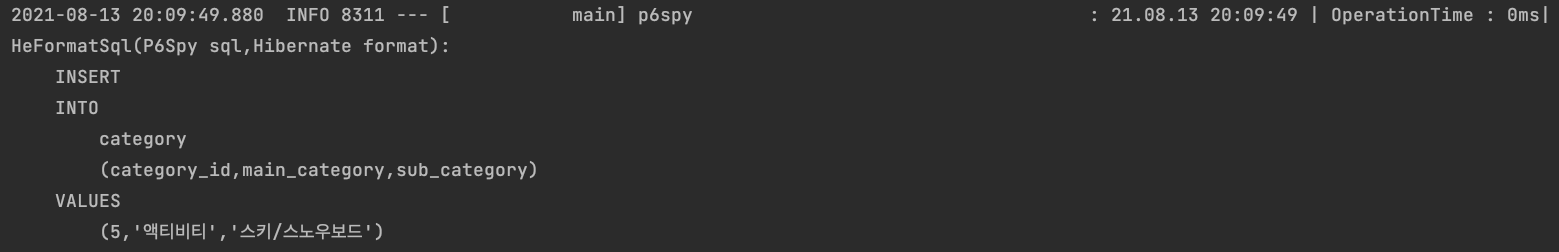 이제부터 @DataJpaTest 대신 @CustomDataJpaTest 를 사용하면 원했던 대로 p6spy를 사용할 수 있습니다.
