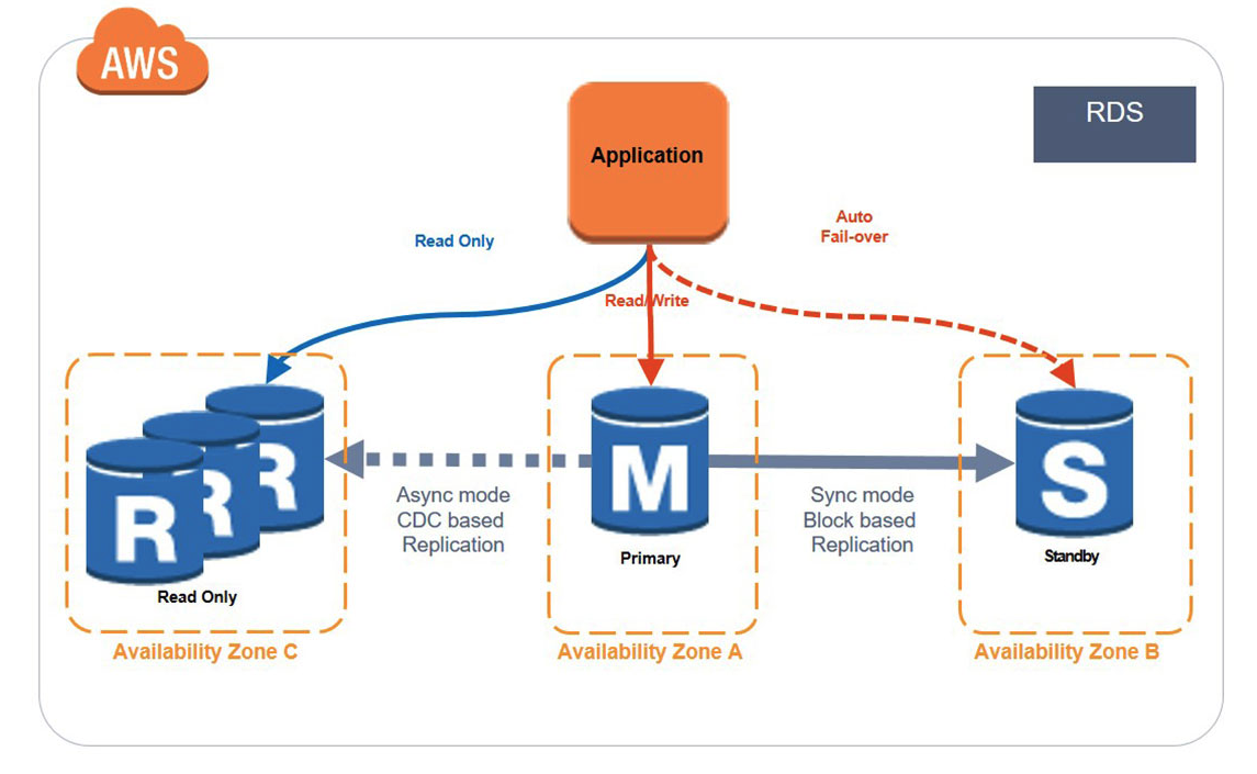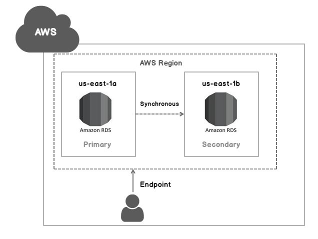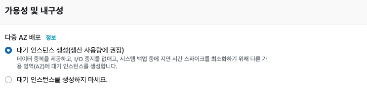 다중 AZ 배포 방식은 Amazon RDS가 다른 가용 영역에 동기식 예비 복제본을 자동으로 프로비저닝 하고, DB 인스턴스 장애나 가용 영역 장애가 발생할 경우 Amazon RDS가 자동으로 예비 복제본에 장애 조치를 수행해 예비 복제본이 마스터로 승격되게 하는 관리하는 방식입니다. 다중 AZ 배포의 경우, 동기식이기 때문에 데이터의 정합성을 보장할 수 있지만 복제본의 경우 읽기 작업을 할 수 없습니다. 이는 가용성을 위한 것이지 부하 분산을 통한 성능 향상을 위한 것이 아니기 때문입니다.