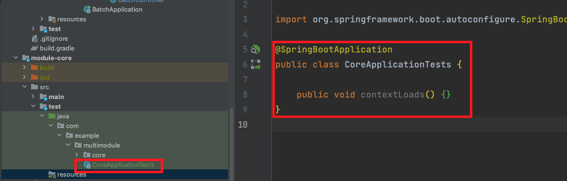 module-core는 Application.java 파일이 없기 아무 설정 없이 테스트를 돌리면 위와 같은 문제가 발생합니다.