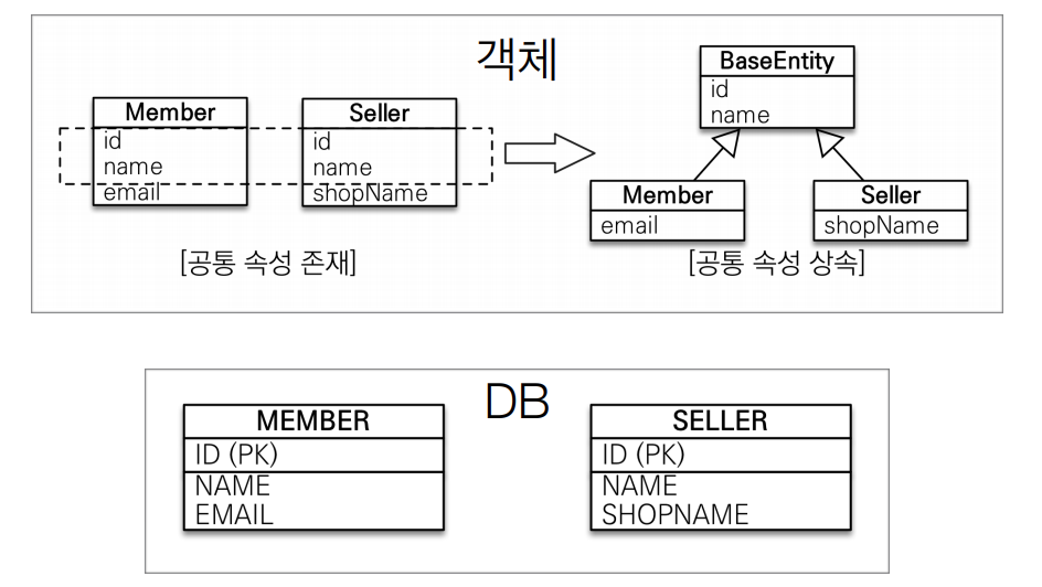 - 객체간의 상속관계를 DB에 적용시키기 위한 작업