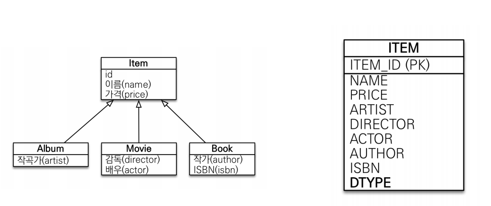 - 운영을 위해서 @DiscriminatorColumn으로 DTYPE열을 만들어주는 게 좋습니다.