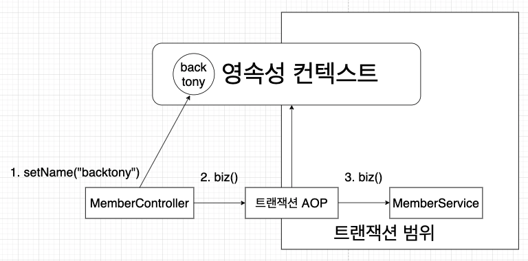 - 영속성 컨텍스트는 트랜잭션 범위 안에서 엔티티를 조회하고 수정할 수 있습니다.