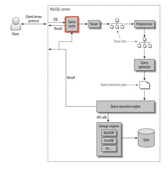 - 가장 먼저 쿼리 캐시를 만나는데 쿼리 캐시는 쿼리 요청 결과를 캐싱하는 모듈로 이를 통해 동일한 SQL 요청에 대한 결과를 빠르게 받을 수 있습니다.