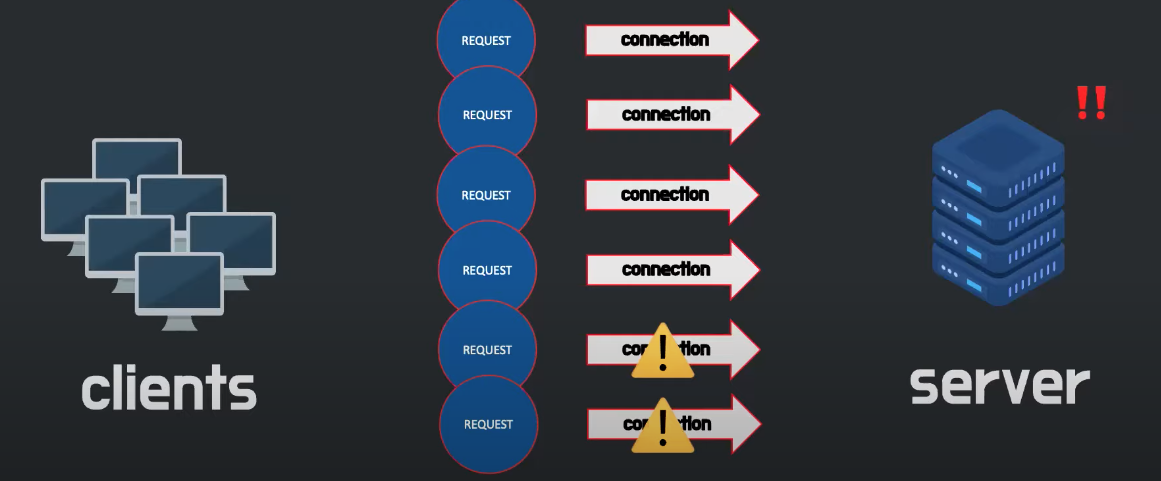 아파치 서버가 대세가 되었을 당시에는 서버가 처리해야 할 요청량이 그 당시 감당할 수 있을 정도였습니다. 트래픽이 점점 증가하면서 서버에 동시에 연결된 커넥션이 많아졌을 때 더 이상 커넥션을 형성하지 못하는 문제가 발생하게 되었습니다. 이를 C10K라고 하고 커넥션 10000개의 문제라고 합니다. 동시에 연결된 커넥션 수란 요청을 처리하기 위해 서버가 한 시점에 얼마나 많은 클라이언트와 커넥션을 형성하는지를 나타냅니다.