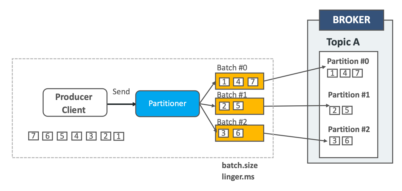 - 클라이언트에 장애가 발생하면 배치 내 있던 메시지는 전달되지 않기 때문에 고가용성이 필요한 경우라면 배치 사이즈를 주지 않는 것도 방법입니다.